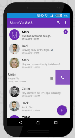 Share Via SMS (SVS) is a dedicated messaging app that lets you text, share images and voice messages using simple SMS. SVS uses trademark technology to package large files into chunks of SMS for optimum file transfer speed. With SVS, you no longer need the internet to share your stuff!