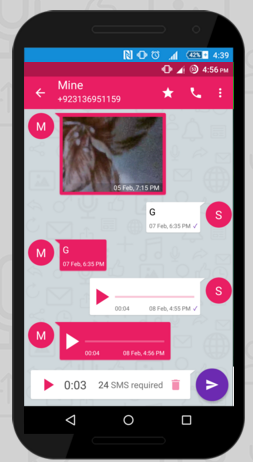 Share audio or share images via sms. Its as easy as select, choose quality and send. Absolutely no need of the internet.
