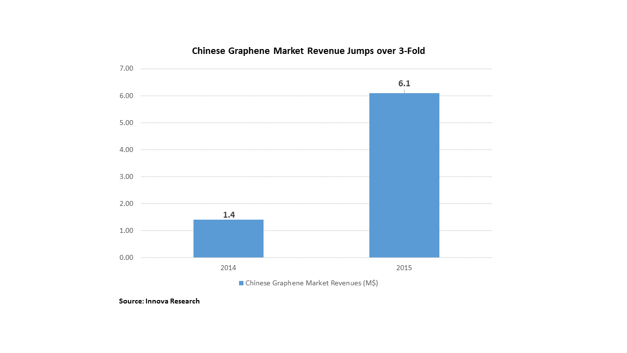 Shanghai, China, According to the latest survey by Innova Research, the Chinese graphene market revenue for 2015 was estimated at $6.1 million, a 335.7% jump from $1.4 million for 2014. InnovaResearch will soon publish detailed analysis of this market in its 2016 edition of the world graphene market report series, entitled “Turning Great technology into Great Profitability – The GlobalGraphene Market Update 2016”.